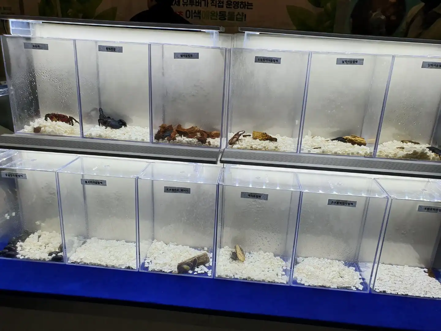 카멜레온, 사슴벌레, 도마뱀, 게 등이 있었어요.
