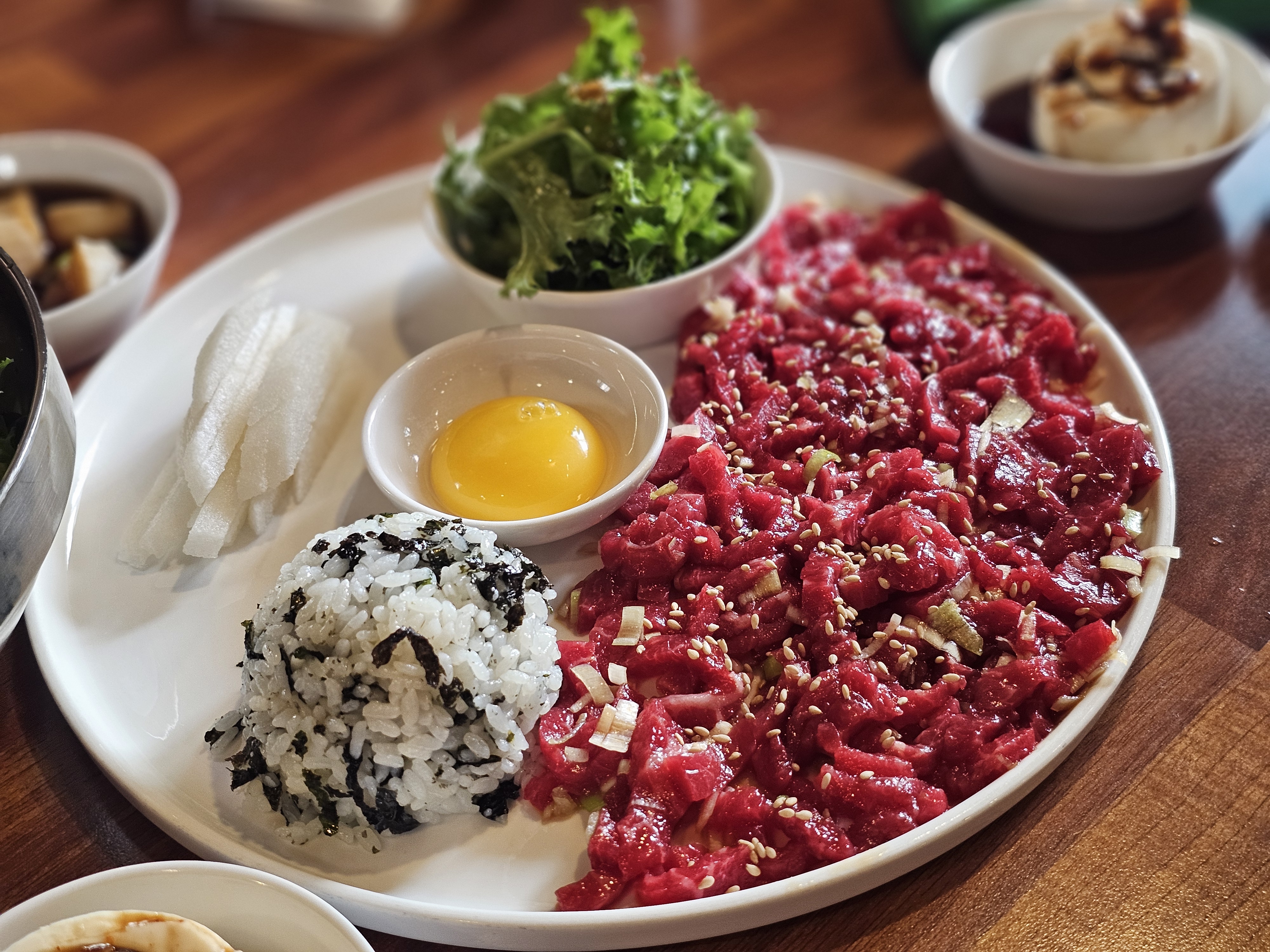 모든 메뉴가 맛있었는데, 특히 고기가 신선해서 육회도 육사시미도 너무 맛있었어요.